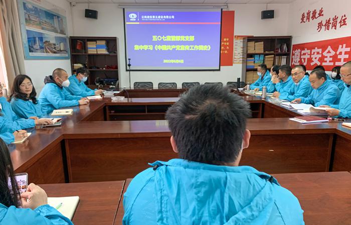 6月6日,五〇七直管部黨支部組織在昆黨員、二線(xiàn)干部職工共25人在直管部會(huì )議室集中學(xué)習書(shū)刊《中國共產(chǎn)黨宣傳工作簡(jiǎn)史》。