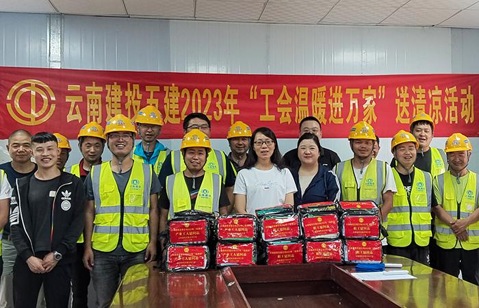 6月9日,公司工會(huì )主席冷蕊帶隊到路橋二部施工的魯巧高速6-4工點(diǎn)項目開(kāi)展2023年“工會(huì )溫暖進(jìn)萬(wàn)家”送清涼慰問(wèn)活動(dòng)。