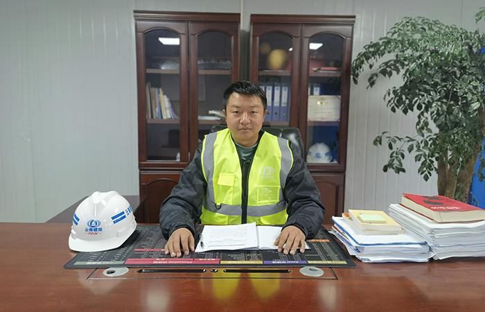 我們乘坐的車(chē)輛從學(xué)校東門(mén)駛入,李林澤與崗亭保安揮手致意,對方立刻放行,想來(lái)彼此已經(jīng)非常熟絡(luò )。來(lái)到項目部門(mén)口,我立刻被這潔凈美觀(guān)的小院所吸引:地面一塵不染,車(chē)輛停放整齊;花壇里的粉色月季競相綻放,環(huán)繞項目部的草地生氣勃勃,顯出與初冬季節相悖的濃濃翠意;L形的兩棟二層活動(dòng)板房上分別張貼著(zhù)“傳承發(fā)揚敬業(yè)、專(zhuān)注、精益、創(chuàng )新的工匠精神,執著(zhù)于打造精品工程和提供優(yōu)質(zhì)服務(wù)”“只有干好今天的現場(chǎng),才能贏(yíng)得明天的市場(chǎng)”標語(yǔ),小院靜謐而溫馨。