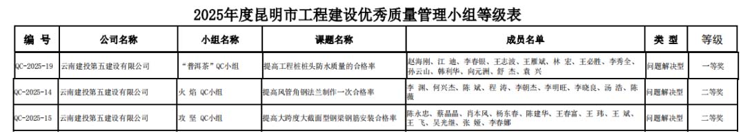 技術(shù)支持: 方森科技近日,云南省建筑業(yè)協(xié)會(huì )、昆明市建筑業(yè)協(xié)會(huì )相繼公布2025年度工程建設優(yōu)秀質(zhì)量管理小組成果評選結果,公司共8項優(yōu)秀QC成果獲獎,其中云南省建筑業(yè)協(xié)會(huì )一等獎2項,二等獎1項,三等獎2項;昆明市建筑業(yè)協(xié)會(huì )一等獎1項,二等獎2項。公司獲評昆明市建筑業(yè)協(xié)會(huì )“工程建設優(yōu)秀質(zhì)量管理小組活動(dòng)優(yōu)秀企業(yè)”稱(chēng)號。