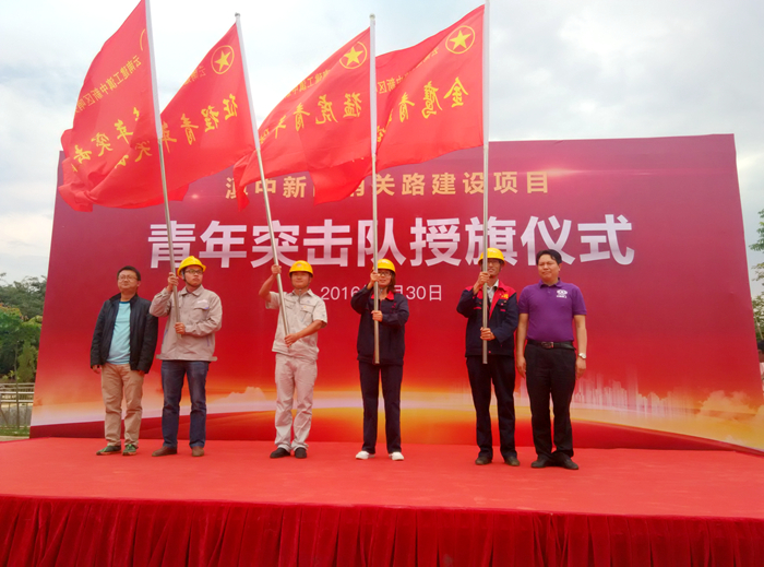 滇中新區哨關(guān)路建設項目共計8支青年突擊隊,由各個(gè)參建單位分別組建而成,路橋總承包部黨總支書(shū)記李家舜、集團團委副書(shū)記楊瑜、滇中新區哨關(guān)路建設指揮部副指揮長(cháng)閉春華和哨關(guān)路投資建設有限公司工程部部長(cháng)程剛為青年突擊隊授旗。公司“金鷹青年突擊隊”由公司路橋一部項目經(jīng)理王孝生擔任隊長(cháng),項目部35歲以下青年職工共計17人組成。根據青年突擊隊競賽考核書(shū),本次青年突擊隊競賽活動(dòng)從2016年6月1日至2016年12月31日止,以“安全、質(zhì)量、進(jìn)度、創(chuàng )新、技能和形象”為主題開(kāi)展。