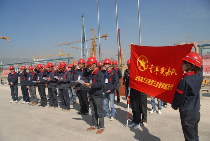 2012年11月23日,第三直管部玉溪公租房項目部青年突擊隊正式成立,公司黨委書(shū)記李興奎,黨委副書(shū)記、紀委書(shū)記吳倩等領(lǐng)導到項目部為青年突擊隊授旗,并要求要著(zhù)力將這支青年突擊隊打造成為西南西北八省區建筑業(yè)中優(yōu)秀的青年突擊隊。