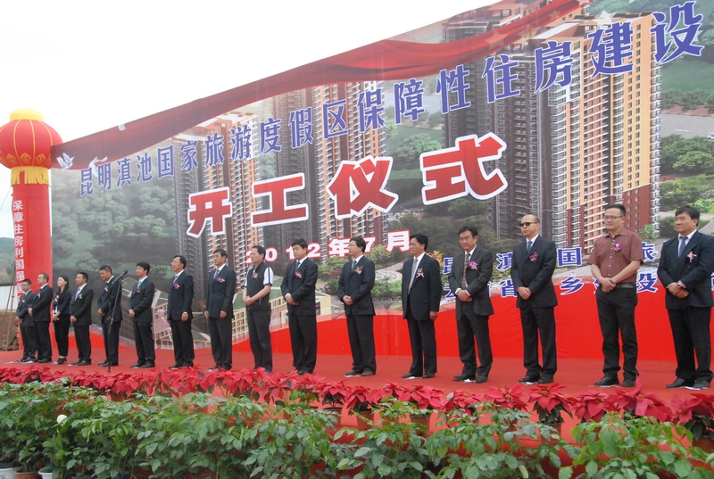 7月29日,昆明市滇池國家旅游度假區2012年保障性住房舉行開(kāi)工儀式,昆明市市委常委、市紀委書(shū)記應永生,昆明市副市長(cháng)何波,集團公司副總經(jīng)理劉勇,集團公司總經(jīng)理助理、城鄉建投公司董事長(cháng),公司董事長(cháng)楊福和出席開(kāi)工儀式。公司總經(jīng)理魏華等其他部分班子成員攜50名職工參加儀式。