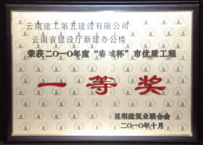公司承建的云南省建設廳新建辦公樓榮獲2010年度“春城杯”市優(yōu)質(zhì)工程一等獎