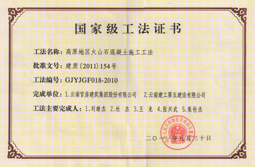 (國家工法)高原地區火山石混凝土施工工法