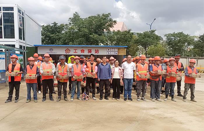 9月2日,五〇一直管項目部對昆明滇池綠道建設項目(外海段)一期EPC、大灣山片區(原五漁邨小鎮)生態(tài)修復項目一標段、云南技師學(xué)院項目開(kāi)展“幸福建投 共建共享”送清涼慰問(wèn)活動(dòng),為項目一線(xiàn)職工、產(chǎn)業(yè)工人代表送上毛巾被、清涼包等慰問(wèn)品?;顒?dòng)中,黨支部書(shū)記帶領(lǐng)全體人員學(xué)習《集團幸福建投建設工作指引手冊(試行)》和《勞動(dòng)書(shū)寫(xiě)新篇章 奮斗筑夢(mèng)新征程倡議書(shū)》,向職工以及產(chǎn)業(yè)工人代表面對面宣傳講解《云南省困難職工…