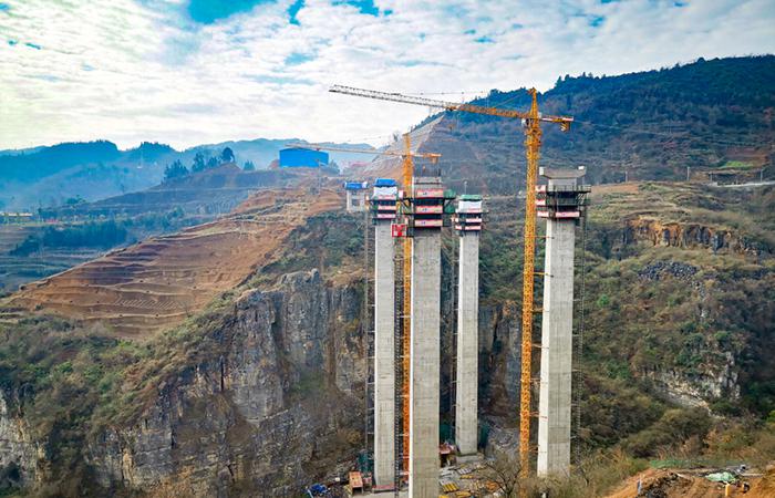 鎮果一級公路三分部五谷大橋高墩左幅2號墩順利封頂
