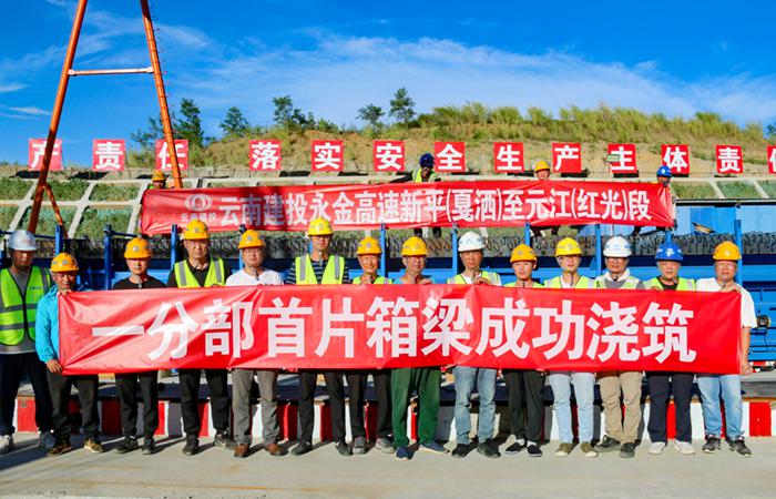 永金高速一分部首片預制箱梁順利澆筑完成