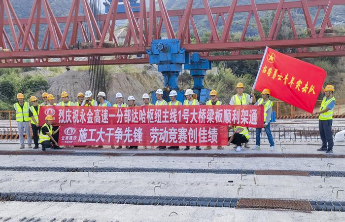 永金高速一分部達哈樞紐立交主線(xiàn)1號大橋梁板順利架通