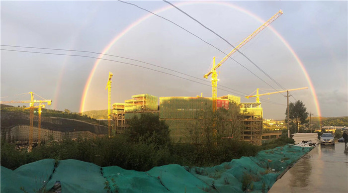 每當看到太陽(yáng)拉到遠方的地平線(xiàn)上、雨后的一道道彩虹,就覺(jué)得工地上的一切似乎都顯得如此生機勃勃,陣陣風(fēng)迎面吹來(lái),才發(fā)現我其實(shí)早已經(jīng)習慣了風(fēng)中的沙土,同事們頭上的安全帽映著(zhù)藍天白云顯得格外耀眼,這就是我和車(chē)行天下汽車(chē)城(二期)項目管理人員的工地生活。大家雖然常年漂泊在外,很少回家,但是因為有了領(lǐng)導的關(guān)懷,同事的相知、相伴,大家心里早已經(jīng)把車(chē)行天下汽車(chē)城(二期)項目部每一人當成了家人,項目部就是我的第二個(gè)家,一個(gè)有夢(mèng)想、有愛(ài)的地方。我相信我們眼前的困難只是暫時(shí)的,我們大家在一起努力,攜手前行,一定能見(jiàn)到雨后的彩虹。