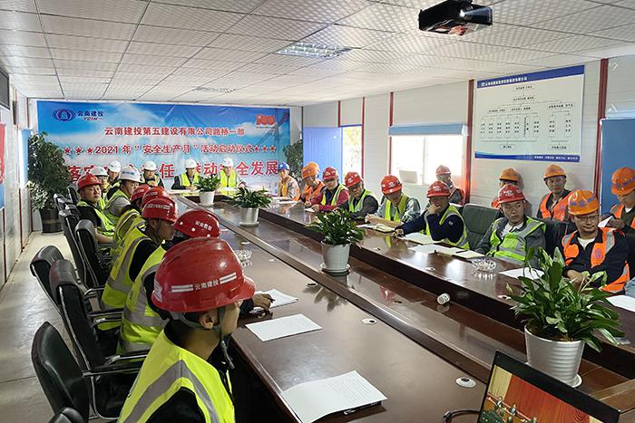 6月9日,路橋一部在麗江職教園區項目舉行了2021年“安全生產(chǎn)月”啟動(dòng)儀式。