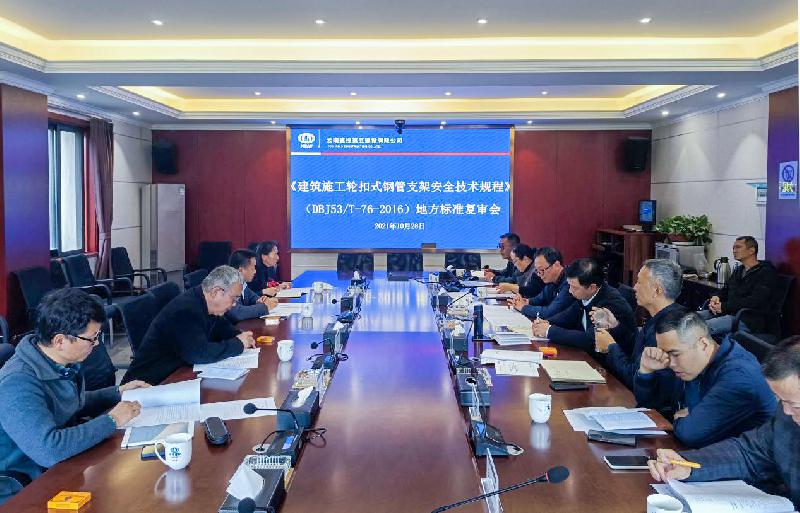 10月28日,公司技術(shù)中心組織召開(kāi)了由公司與北京捷安建筑腳手架有限公司主編的《建筑施工輪扣式鋼管支架安全技術(shù)規程》DBJ53/T-76-2016地方標準復審會(huì )議。復審人員由復審專(zhuān)家、省住建廳標準管理部門(mén)人員、標準主要編制人員組成,公司董事長(cháng)王楷銀出席會(huì )議。