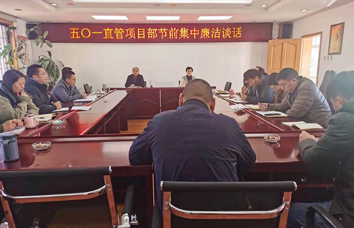 1月25日下午,五〇一直管項目部開(kāi)展春節前集中廉潔談話(huà),會(huì )議由黨支部書(shū)記王敏主持,直管部班子成員、科室負責人及項目經(jīng)理參會(huì )。