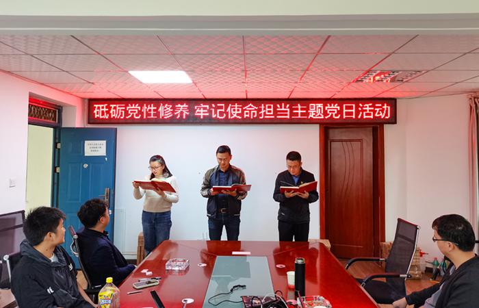 會(huì )上,黨支部書(shū)記領(lǐng)學(xué)了習近平總書(shū)記在慶祝中國共產(chǎn)主義青年團成立100周年大會(huì )上的重要講話(huà)精神。隨后帶領(lǐng)全體黨員面向鮮紅的黨旗,舉起右手、握緊拳頭,莊嚴宣誓,“我志愿加入中國共產(chǎn)黨,擁護黨的綱領(lǐng),遵守黨的章程,履行黨員義務(wù)……”一句句鏗鏘有力的誓詞響徹整個(gè)會(huì )議室,震撼現場(chǎng)每個(gè)人的心靈。通過(guò)重溫入黨誓詞,讓黨員們在黨旗下審視自我,牢記共產(chǎn)黨員的政治責任和歷史使命,更加堅定了為共產(chǎn)主義奮斗終身的理想信念。