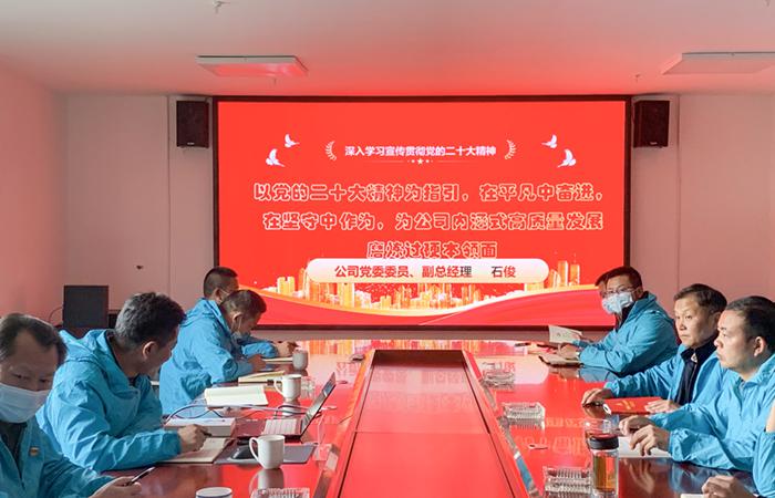 石俊強調,認真學(xué)習宣傳貫徹黨的二十大精神,是當前和今后一個(gè)時(shí)期的頭等大事和首要政治任務(wù)。一要用黨的二十大精神武裝頭腦,讓黨的二十大精神成為全體黨員干部干事創(chuàng )業(yè)的思想武器、力量源泉和精神支柱。二要用黨的二十大精神凝魂聚力,按照公司黨委要求,有重點(diǎn)、分步驟、多層次開(kāi)展學(xué)習貫徹黨的二十大精神各項活動(dòng),迅速掀起學(xué)習貫徹工作熱潮,確保宣傳貫徹到黨員和干部職工心里。三要用黨的二十大精神推動(dòng)實(shí)現各項年度重點(diǎn)工作目標,科學(xué)謀劃新思路、新舉措、新方式,不折不扣貫徹落實(shí)好黨的二十大的“統籌發(fā)展和安全”的重要要求,以實(shí)干推動(dòng)年度目標的實(shí)現。四要結合學(xué)習黨的二十大精神,緊緊圍繞事關(guān)項目一線(xiàn)生產(chǎn)、安全、技術(shù)、質(zhì)量等重難點(diǎn)問(wèn)題,開(kāi)展深入研究,統籌做好年關(guān)各項工作,確保取得實(shí)實(shí)在在的工作成效,以?xún)?yōu)異的工作成績(jì)助推公司內涵式高質(zhì)量發(fā)展。
