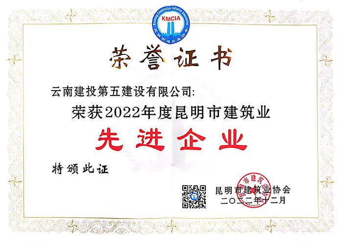 2022年12月8日,昆明市建筑業(yè)協(xié)會(huì )召開(kāi)第八屆理事會(huì )換屆選舉會(huì )員大會(huì ),公司繼續當選為昆明市建筑業(yè)協(xié)會(huì )副會(huì )長(cháng)單位,同時(shí)榮獲2022年度昆明市建筑業(yè)“先進(jìn)企業(yè)”“質(zhì)量管理優(yōu)秀企業(yè)”“質(zhì)量管理小組活動(dòng)優(yōu)秀企業(yè)”3項榮譽(yù)。