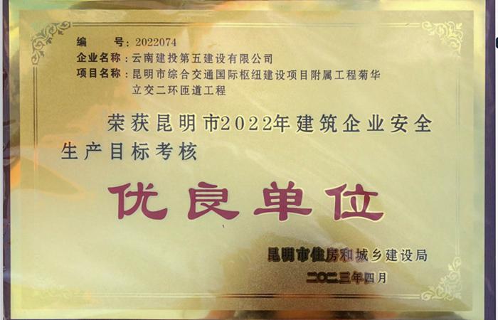 近日,由路橋一部承建的昆明市綜合交通國際樞紐建設項目附屬工程菊華立交二環(huán)匝道工程,榮獲昆明市2022年建筑企業(yè)安全生產(chǎn)目標考核優(yōu)良單位,項目經(jīng)理常勇、項目安全負責人繆坤宏榮獲昆明市2022年建筑企業(yè)安全生產(chǎn)優(yōu)秀個(gè)人稱(chēng)號。