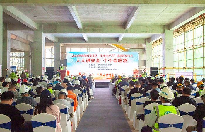 6月9日上午,呈貢區2023年“安全生產(chǎn)月”啟動(dòng)儀式在公司第七直管項目部負責施工的云南藝術(shù)學(xué)院二期(一標段)建設項目舉行,呈貢區住建局副局長(cháng)張永明、應急管理局副局長(cháng)徐魯臣,云南藝術(shù)學(xué)院基建后勤處黨總支書(shū)記童汝全,公司副總經(jīng)理石俊出席啟動(dòng)儀式并講話(huà)。