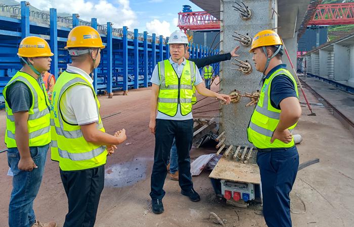 在項目一線(xiàn),石俊一行深入每一個(gè)施工點(diǎn)位,重點(diǎn)了解施工點(diǎn)位的節點(diǎn)、施工便道硬化的情況、梁場(chǎng)的生產(chǎn)進(jìn)度和質(zhì)量、隧道進(jìn)洞的速度,并對施工管理和安全生產(chǎn)提出要求。