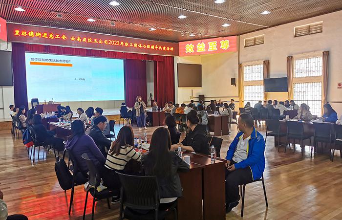 活動(dòng)邀請到云南開(kāi)放大學(xué)心理健康教育課程思政教學(xué)名師張倩老師,采用PPT從“心理常態(tài)與偏態(tài)”“心理問(wèn)題與心理疾病”“心理咨詢(xún)”等方面結合案例分析的方式,圖文并茂、深入淺出的為職工講述了心理健康知識與調試方法。在心理賦能老師的帶動(dòng)下,才加活動(dòng)的職工依次開(kāi)展了“繪制生命線(xiàn)”“繩索游戲——探索人際關(guān)系”“生涯彩虹圖——找到人生的位置”以及“案例分析”等體驗式活動(dòng),職工們逐漸敞開(kāi)心扉、積極分享,在有趣的互動(dòng)游戲中放松身心、充分體驗和交流,現場(chǎng)歡笑聲不斷。