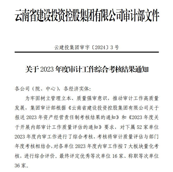 技術(shù)支持: 方森科技近日,集團審計部發(fā)布了《關(guān)于2023年度審計工作綜合考核結果通知》,考核將審計質(zhì)量評估與部門(mén)年度考核相結合,公司獲評“優(yōu)秀”等次。