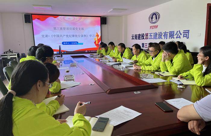5月6日上午,第三直管項目部黨支部組織開(kāi)展專(zhuān)題黨課,集中學(xué)習《中國共產(chǎn)黨紀律處分條例》。直管部在昆黨員、關(guān)鍵崗位人員參加。