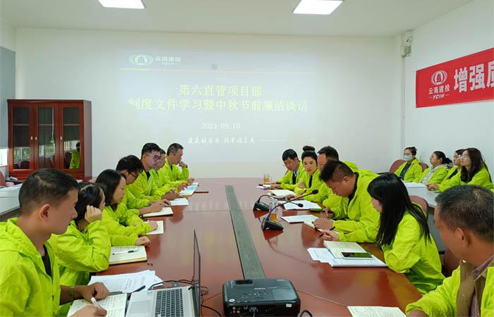 9月10日,第六直管項目部在直管部開(kāi)展中秋節前廉潔談話(huà)。直管部班子成員、二線(xiàn)及各項目全體管理人員參加,國外項目人員采用“數字建投”線(xiàn)上直播方式參加。