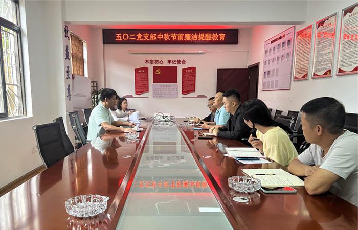 9月10日上午,五〇二直管項目部黨支部在直管部黨員活動(dòng)室開(kāi)展中秋國慶雙節廉潔提醒教育,在昆班子成員、項目人員及二線(xiàn)全體管理人員參會(huì )。