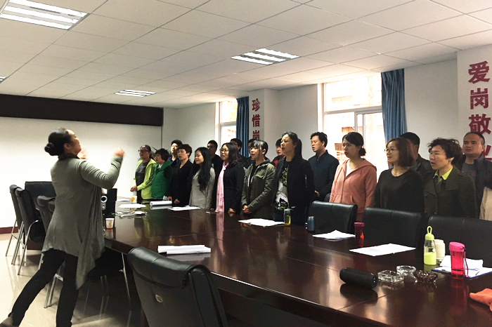 4月,根據公司工會(huì )開(kāi)展“唱響發(fā)展主旋律”歌詠比賽的通知,第九直管項目部積極組織30名員工開(kāi)始歌詠比賽排練,還特別邀請到云南藝術(shù)學(xué)院合唱專(zhuān)業(yè)的王老師進(jìn)行指導;每天晚上六點(diǎn),直九部會(huì )議室就響起歌聲,男聲高亢,女聲柔美,共譜出一曲和諧的旋律。