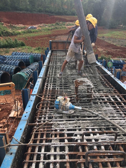 大木寨1號中橋單幅全長(cháng)132.16米,橋面凈寬22米,為上跨改移地方路而設,共有橋墩20個(gè),蓋梁4個(gè)。此次順利澆筑完成的蓋梁為大木寨1號中橋右幅1#墩蓋梁。該蓋梁長(cháng)度 11.2米,寬1.9米,高1.6 米,歷經(jīng)4個(gè)小時(shí)完成澆筑,澆筑C30混凝土 33立方米。項目部為了確保蓋梁首件工程的質(zhì)量,編制了詳細的施工方案,在原材料質(zhì)量控制的基礎上,對蓋梁施工全過(guò)程進(jìn)行嚴格的管控。