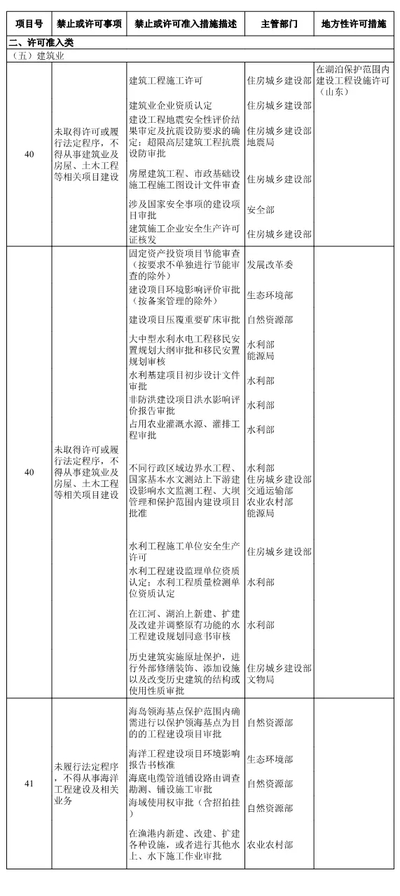 在2019版《市場(chǎng)準入負面清單》中,與建筑業(yè)相關(guān)的事項與規定有: