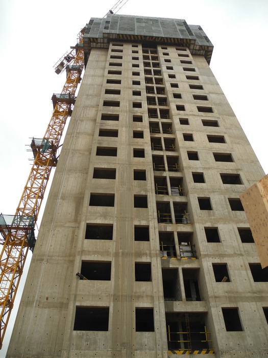 一進(jìn)入現場(chǎng),眼前的場(chǎng)景便讓大家耳目一新,同樣是進(jìn)行模板搭設工作,卻沒(méi)有頭頂上飛來(lái)飛去的塔吊,也沒(méi)有卸料平臺和卸料工人,原來(lái)是因為鋁合金模板拆裝方便,所有模板均通過(guò)樓板的孔洞傳遞,所以減少了塔吊的使用和安全隱患。在模板拆卸后的樓層里,平整的墻面、頂面,順直的陰陽(yáng)角更是讓各位參觀(guān)者眼前一亮。