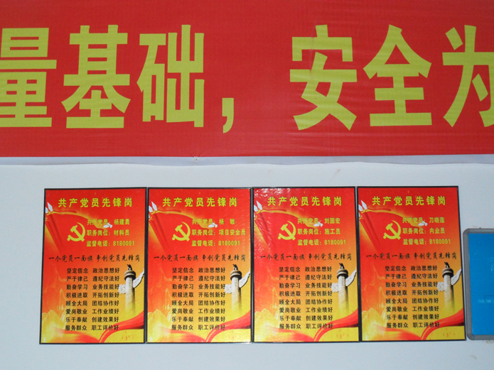 活動(dòng)提出“讓身份亮起來(lái),讓旗幟樹(shù)起來(lái)”。為此,黨支部制作了“共產(chǎn)黨員先鋒崗”標牌,標牌上標注姓名、職務(wù)崗位、監督電話(huà),標牌掛在科室辦公室、項目部辦公室的醒目位置,接受群眾職工監督。