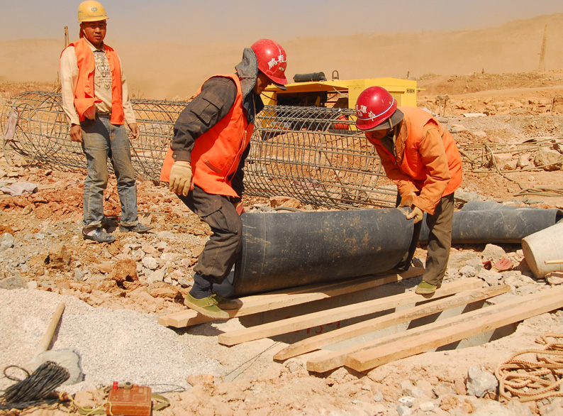 為進(jìn)一步搞好A2標段的950多棵人工挖孔樁施工,公司組建了由公司直接管理的新機場(chǎng)工程項目部。工地上沒(méi)有水,施工用水和生活用水就購買(mǎi)從7-8公里以外拉來(lái)的水,項目部在各個(gè)施工點(diǎn)搭建了十幾個(gè)臨時(shí)水池蓄水,以保證施工正常進(jìn)行;工地上沒(méi)有電,為了保證施工用電,工地上自備了多臺柴油發(fā)電機發(fā)電 ;春節后進(jìn)入昆明的多風(fēng)季節,久旱無(wú)雨的新機場(chǎng)工地上,到處塵土飛揚。項目部為每一個(gè)人購置了口罩,不管工地上氣溫多高,都帶著(zhù)口罩作業(yè),全體人員天天都灰頭土臉地奮戰在工地上。