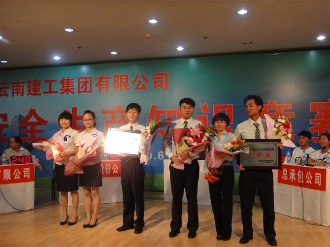 在安全生產(chǎn)月來(lái)臨之際,集團公司組織安全生產(chǎn)知識競賽。五建公司工會(huì )、團委高度重視,積極組織,在全司范圍內多方篩選,選出4名優(yōu)秀管理人員組成公司代表隊。 6月10日,五建公司代表隊參加小組賽角逐進(jìn)入決賽。6月18日下午在與進(jìn)入決賽的六家兄弟單位較量中獲得決賽第二名。
