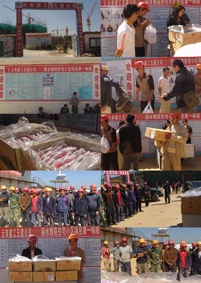 在祖國母親60華誕的歡慶氛圍中、中華兒女合家團圓之際,五0五直管項目部不忘戰斗在麗水雅苑項目施工第一線(xiàn)的民工兄弟姐妹們,給他們每人送上一份月餅、獻上一份祝福。努力營(yíng)造以人為本、團結互助、同舟共濟、構建和諧的良好氛圍。五0五直管項目部 桂華 報道