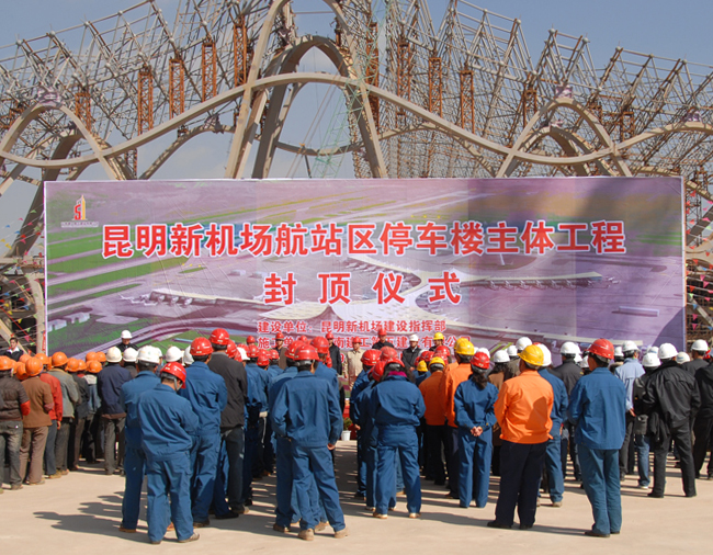 技術(shù)支持: 方森科技由云南建工第五建設有限公司昆明新機場(chǎng)項目部施工的昆明機場(chǎng)停車(chē)樓主體工程,于2009年12月28 實(shí)現結構封頂,封頂儀式是日在昆明新機場(chǎng)項目部建設工地隆重舉行。