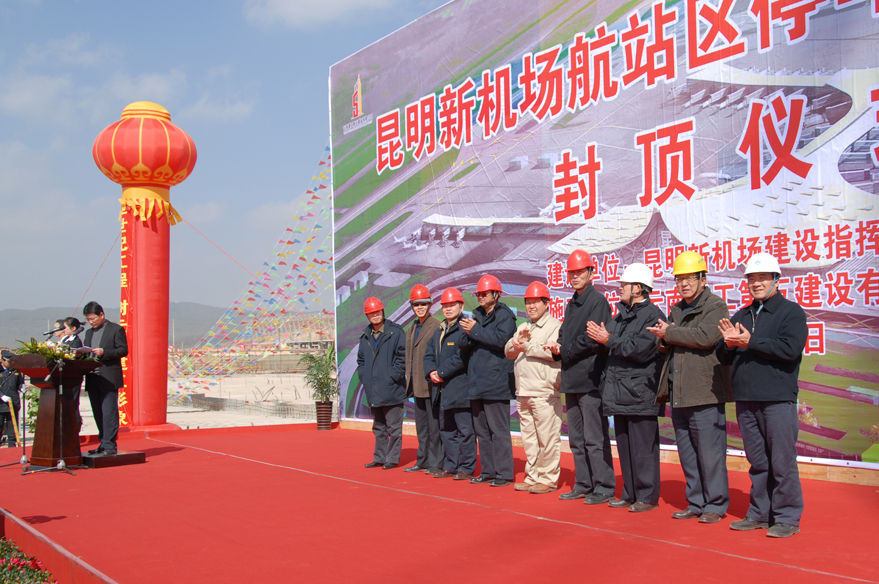 集團新機場(chǎng)指揮部領(lǐng)導、五建設有限公司領(lǐng)導成員及各有關(guān)單位各部門(mén)主要領(lǐng)導、昆明新機場(chǎng)項目部成員和參見(jiàn)員工等參加了封頂儀式。