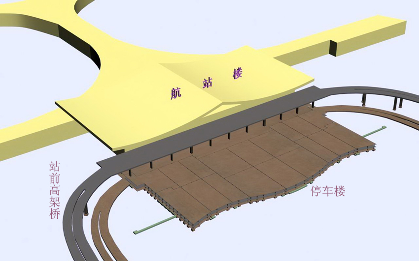 機場(chǎng)航站樓前停車(chē)樓及站前高架橋示意圖
