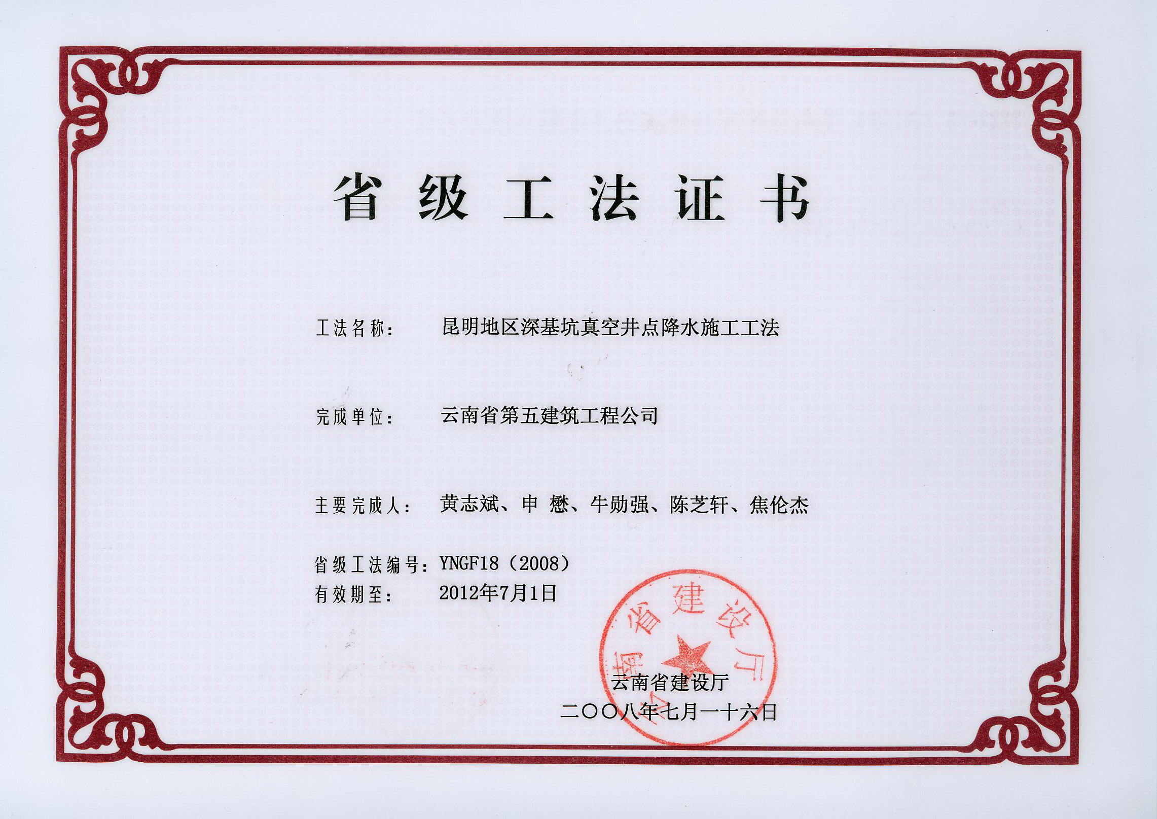 云南五建編制的省級工法——昆明地區深基坑真空井點(diǎn)降水施工工法