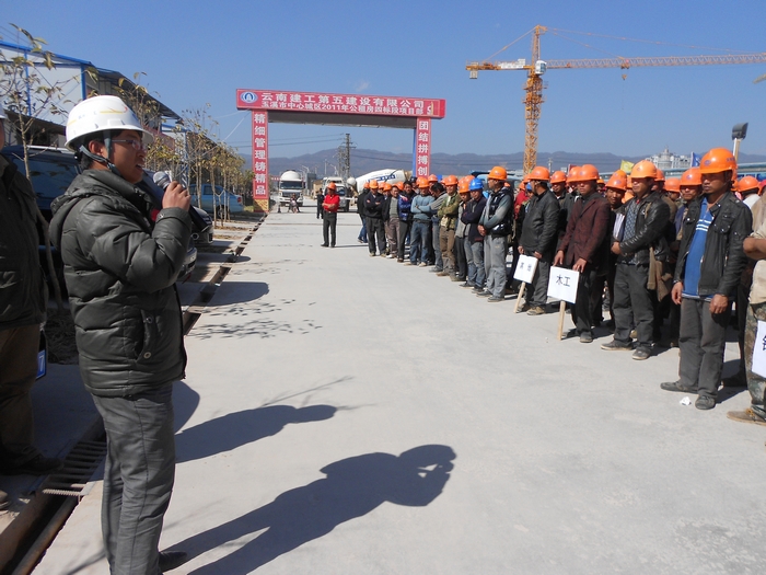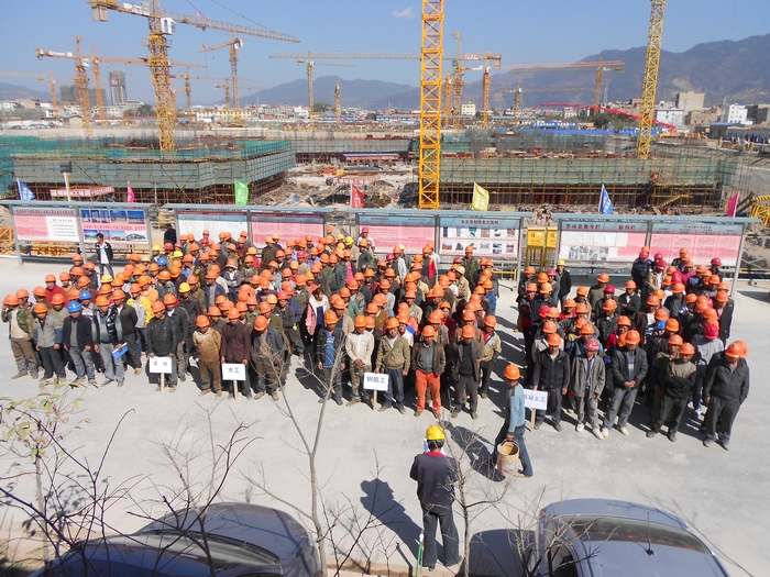2013年1月16日,玉溪公租房項目部對現場(chǎng)300多名操作班組人員進(jìn)行了春節前安全教育。