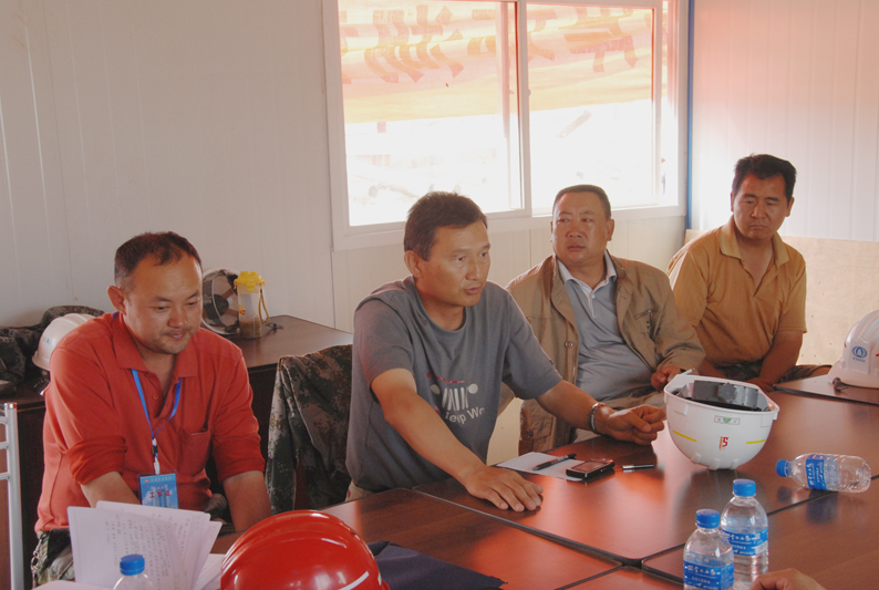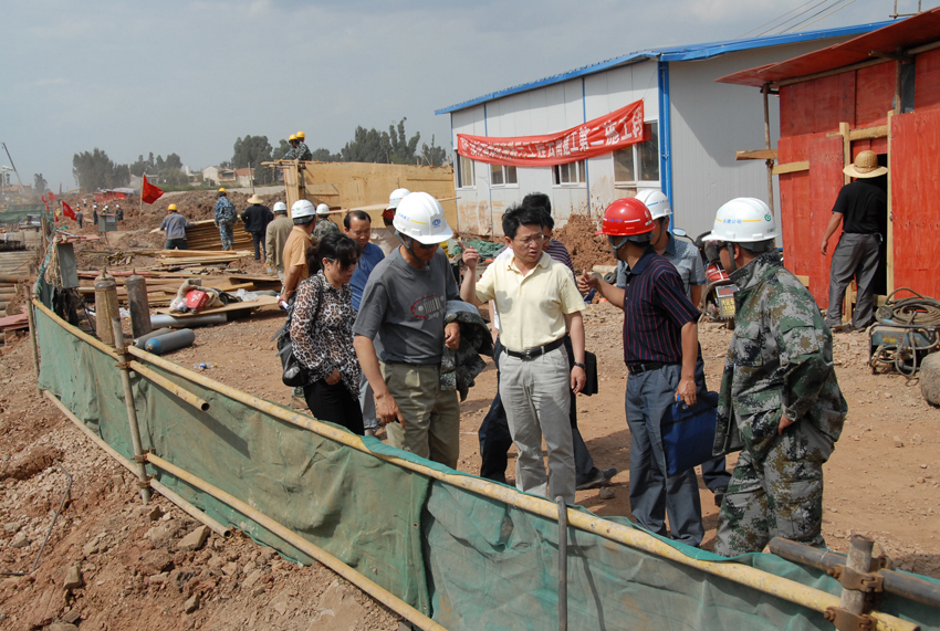 公司副總經(jīng)理兼第三直管部經(jīng)理段培勇介紹了工程施工組織管理情況。該工程的工期十分緊張,從4月6日根據建工集團要求緊急進(jìn)場(chǎng)增援施工以來(lái),五建公司第三直管部、五建市政工程公司以及近日進(jìn)場(chǎng)的503直管部一直晝夜施工,連續奮戰,沒(méi)有休過(guò)一天的節假日。工程場(chǎng)地非常狹窄,幾乎天天都要為尋找堆土場(chǎng)地費盡心思,還要花費大量精力協(xié)調與當地村民的關(guān)系。在整個(gè)工程施工中,不僅與集團內兄弟單位展開(kāi)無(wú)形中的勞動(dòng)競賽,而且還要與國字號的專(zhuān)業(yè)隊伍同臺競技。參建同志決心為公司和集團榮譽(yù)全力一搏,以?xún)?yōu)秀的建設業(yè)績(jì)報答上級的信任。針對施工現場(chǎng)地處低洼排水不暢、淤積泥土極其松軟的地質(zhì)條件,提出了分工合作、協(xié)同作戰,搶在雨天到來(lái)之前全力拼搏搶進(jìn)度的工作思路。