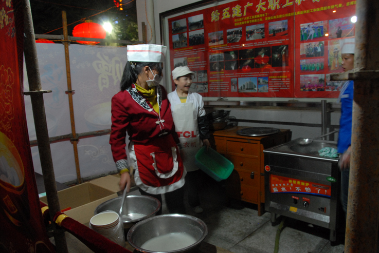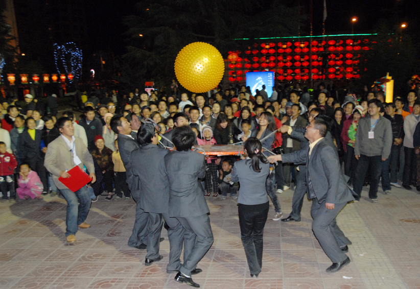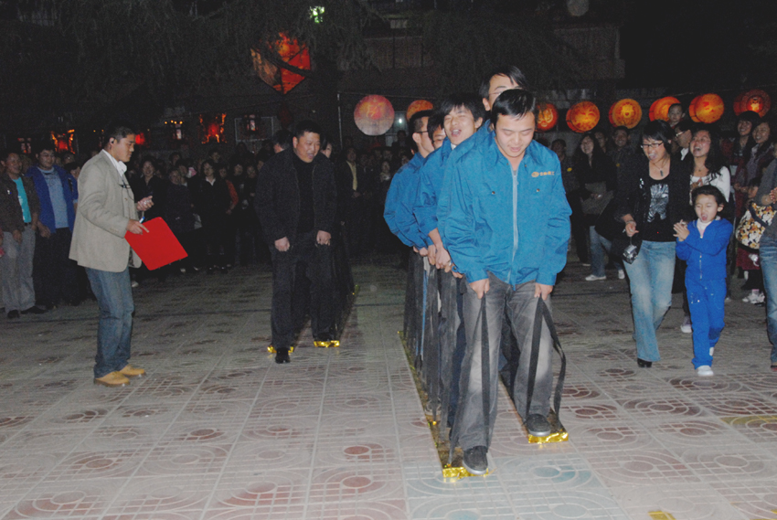 由基層各單位送來(lái)的參展作品異彩紛呈。最醒目的是主席臺旁的公司五大標志性建筑燈箱,新機場(chǎng)項目的詩(shī)詞是機場(chǎng)項目部工會(huì )主席楊應同志所寫(xiě)的《念奴嬌.新機場(chǎng)建設有感》,表現了奮斗在工地上職工們的朝氣蓬勃;506分公司作品是他們自行設計的圖案,開(kāi)頭是4,后面9個(gè)0,象征著(zhù)公司今年要完成40個(gè)億的經(jīng)營(yíng)任務(wù);門(mén)上的兩個(gè)工藝精美的古典燈籠結合我們501分公司的一幢幢現代建筑,古樸中透著(zhù)現代的氣息;第一個(gè)獲得魯班金像獎的505直管項目部的送來(lái)的作品立體又質(zhì)感;海天一色中揚帆的船寓意著(zhù)家福人和,菊香明月,五建一帆風(fēng)順……各式各樣的彩燈都表達著(zhù)對五建公司的美好祝福。兩個(gè)集體趣味項目超級大腳板和抬氣球,分別由新機場(chǎng)項目部、景秀西苑項目部、502直管項目部和507分公司派出的代表隊參加,團隊的力量一目了然。民間藝人表演的《變臉》、《頂碗》和魔術(shù)《飛桌子》以及劃彩船、騎毛驢等傳統項目吸引了眾多的觀(guān)眾。燈謎區人頭攢動(dòng),同時(shí)進(jìn)行的還有元宵湯圓和冰糖葫蘆大贈送;民間藝人現場(chǎng)表演了剪紙、草編、畫(huà)糖畫(huà)、捏面人等節目,他們的手工作品都現場(chǎng)免費贈送給大家。