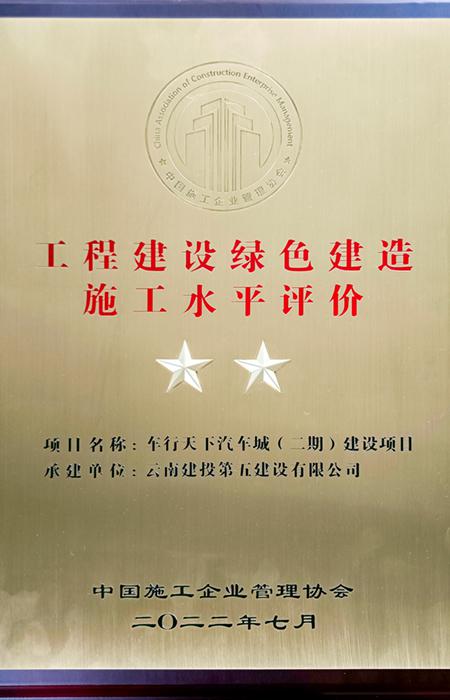公司車(chē)行天下(二期)項目獲中施協(xié)“工程建設綠色建造施工水平”二星評價(jià)