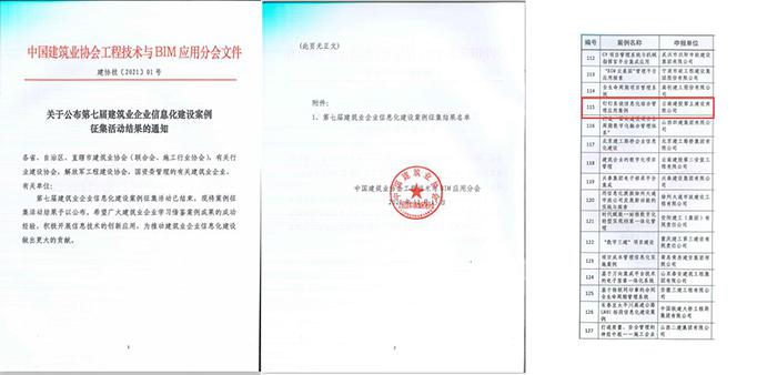 公司獲評第七屆建筑企業(yè)信息化建設案例Ⅲ類(lèi)成果