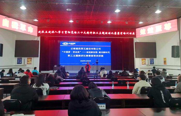 12月6日下午,公司工會(huì )以《“中國夢(mèng)·勞動(dòng)美”——奮進(jìn)新征程?建功新時(shí)代》為主題的深入學(xué)習貫徹黨的二十大精神職工主題演講比賽賽前培訓講座在公司禮堂順利開(kāi)展。各基層單位參加演講比賽的選手、工會(huì )主席、工會(huì )干事以及熱愛(ài)演講的職工同志等60余名干部職工參加線(xiàn)下培訓,培訓同時(shí)通過(guò)“云南建投第五建設有限公司”釘釘群進(jìn)行實(shí)時(shí)直播,200余名干部職工同步參加此次線(xiàn)上培訓。本次培訓特別邀請到云南演講學(xué)會(huì )副會(huì )長(cháng)徐俊波…