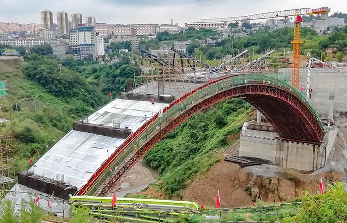 鎮雄三孔景觀(guān)橋右幅主拱圈順利澆筑完成