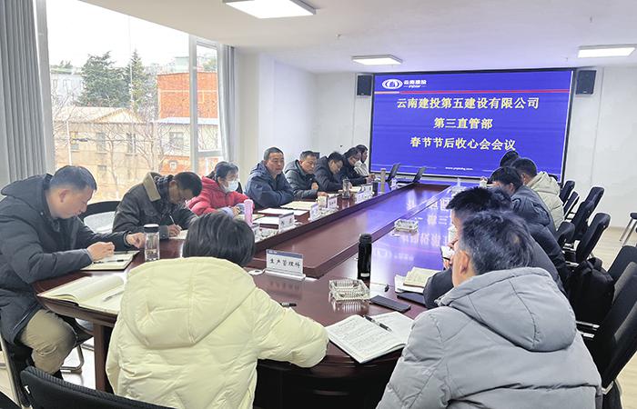 1月29日上午,第三直管項目部召開(kāi)2023年春節節后收心會(huì ),傳達了公司收心會(huì )會(huì )議精神,安排部署了直管部的各項重點(diǎn)工作。直管部班子成員、項目經(jīng)理及全體在昆職工共計24人參會(huì )。會(huì )議總結了2022年的直管部的各項工作情況,深入分析2023年直管部所面臨的形勢,要求全體職工迅速行動(dòng),收心歸位,以良好的精神狀態(tài)迎接新一年的工作。會(huì )議要求,一要以積極的心態(tài)反思過(guò)去一年的工作長(cháng)短,理出新一年的工作思路和目標,制…